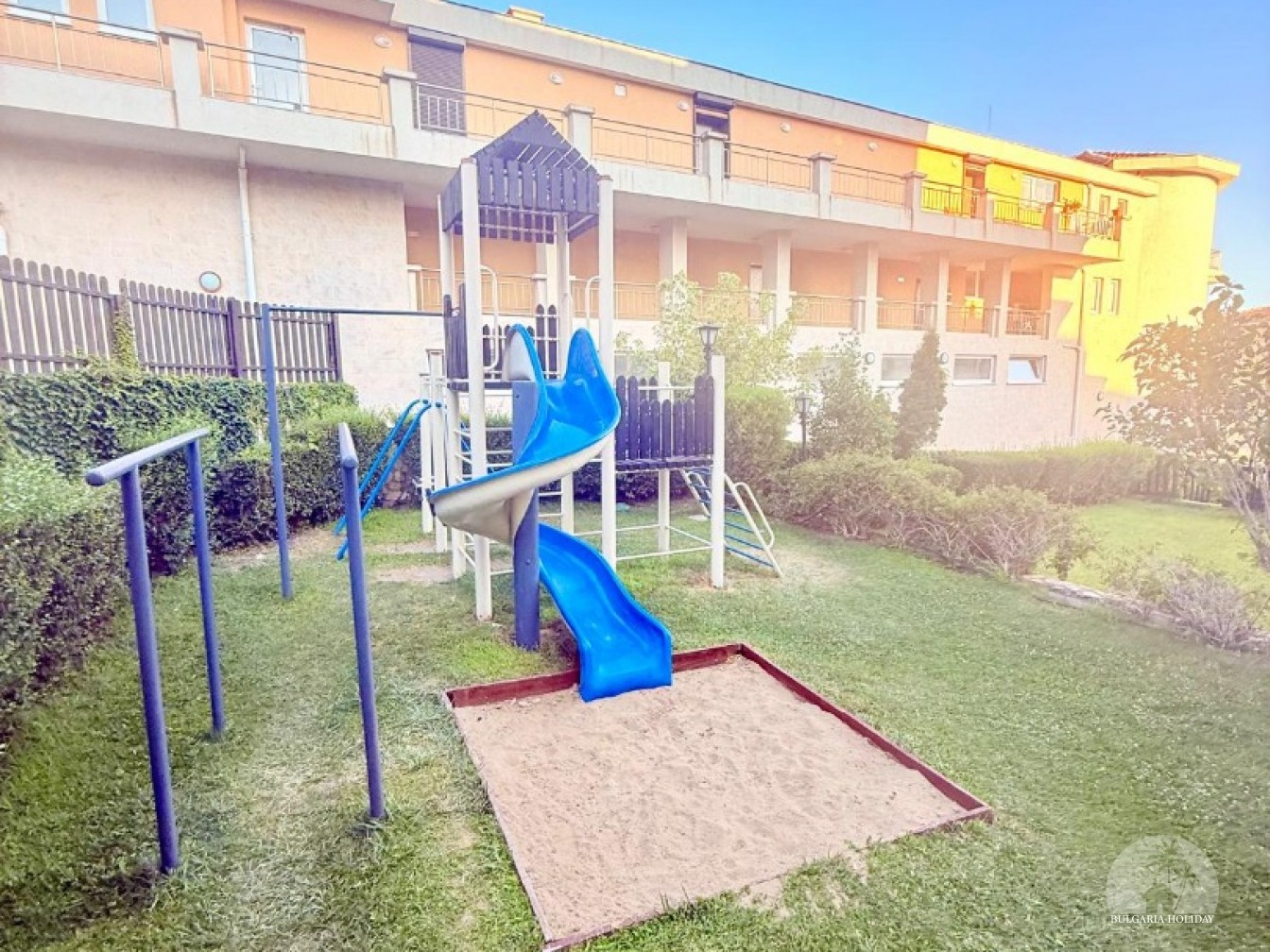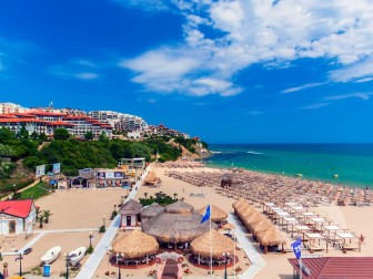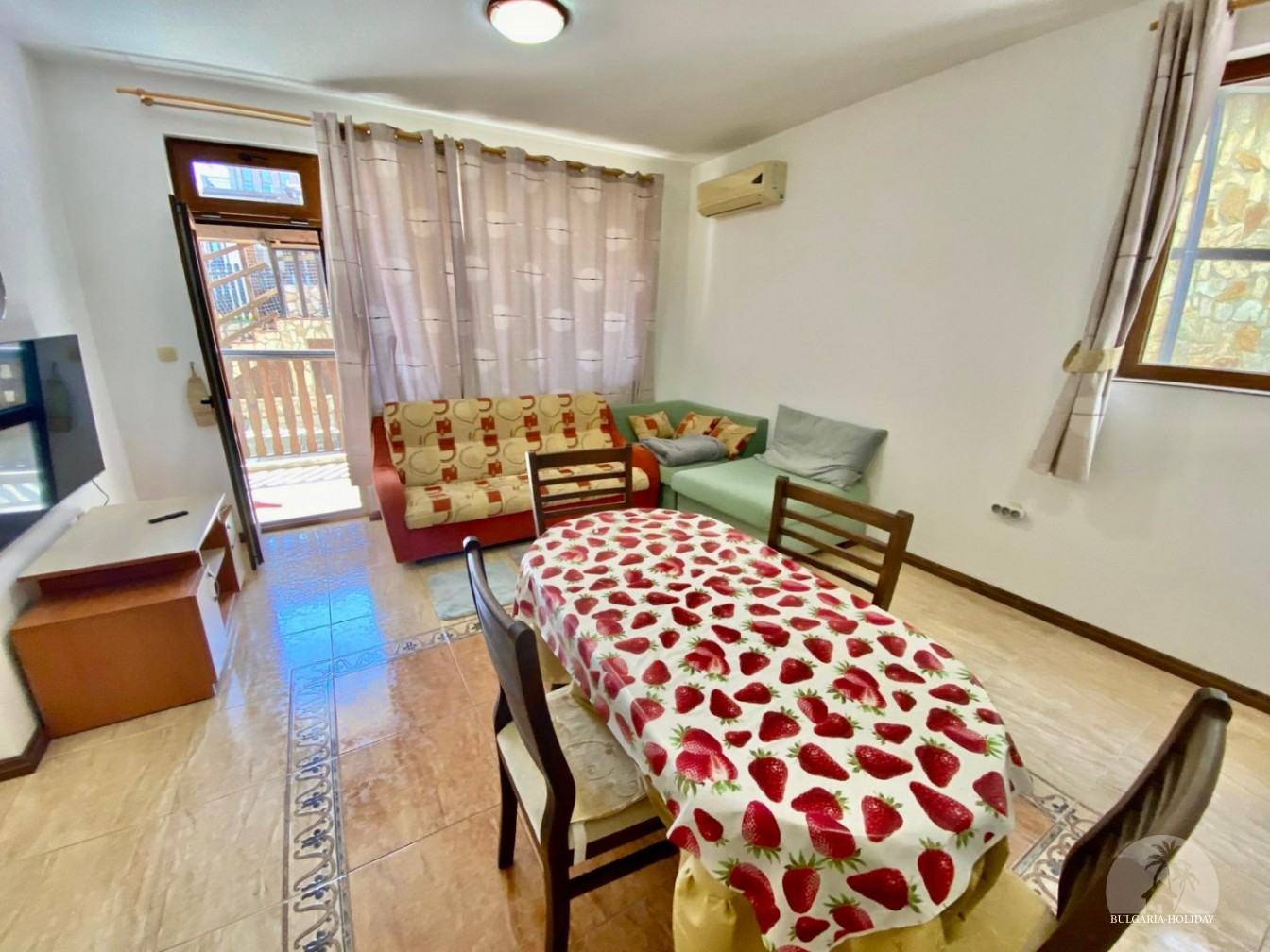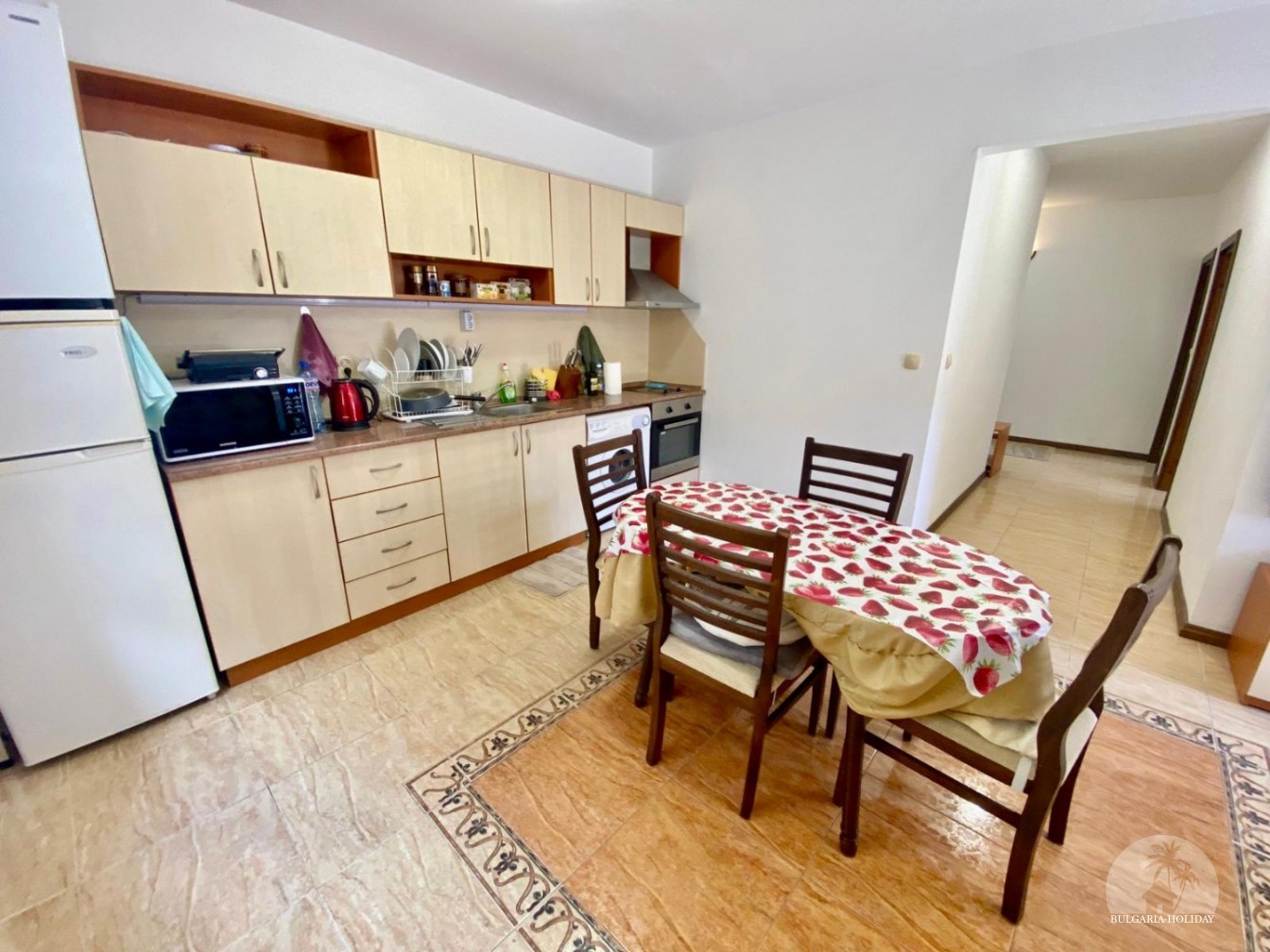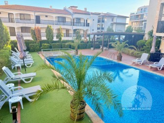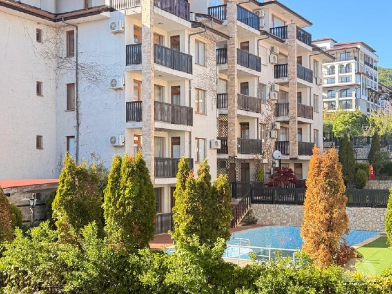 In the center of an almost closed circle there is a restaurant, a children's pool, an adult pool and two mini markets. 100 meters from the beach with a very convenient entry into the water for children (shallow), a trampoline, a restaurant on the beach, etc. Within walking distance there is a marina with beautiful yachts, restaurants for every taste (Russian, Bulgarian, Mediterranean cuisine, sushi bar), boutiques and shops are located along the marina.