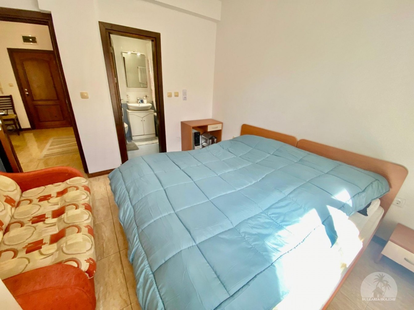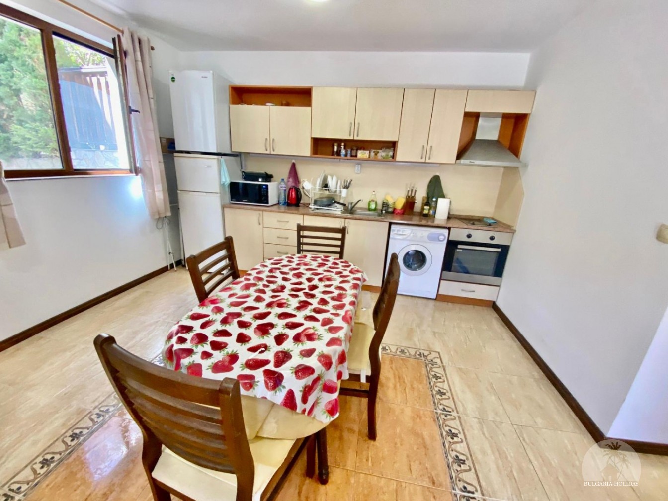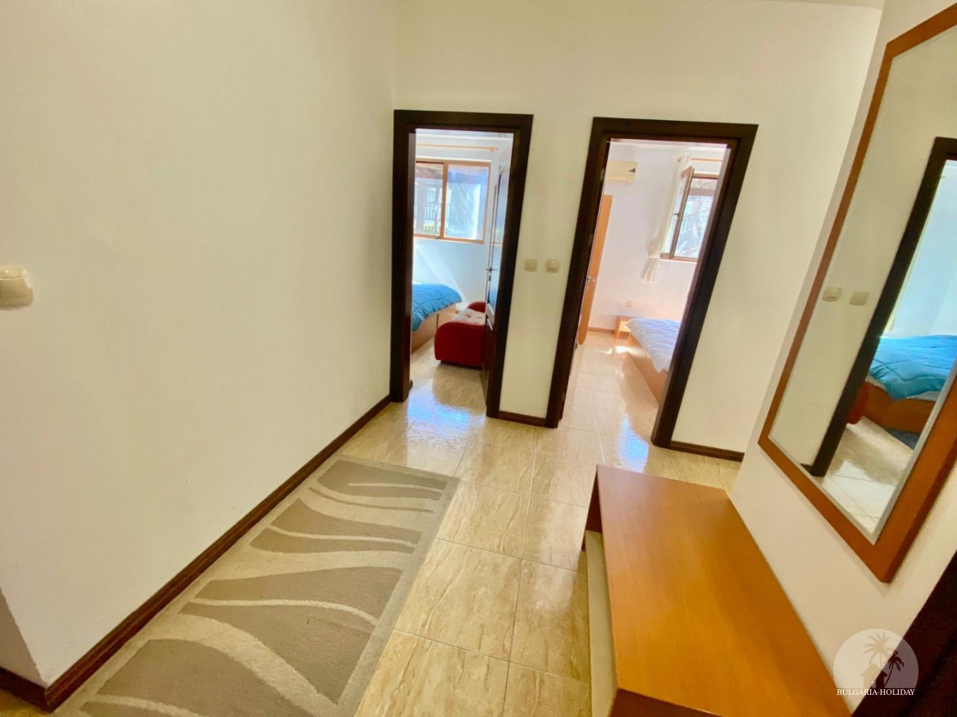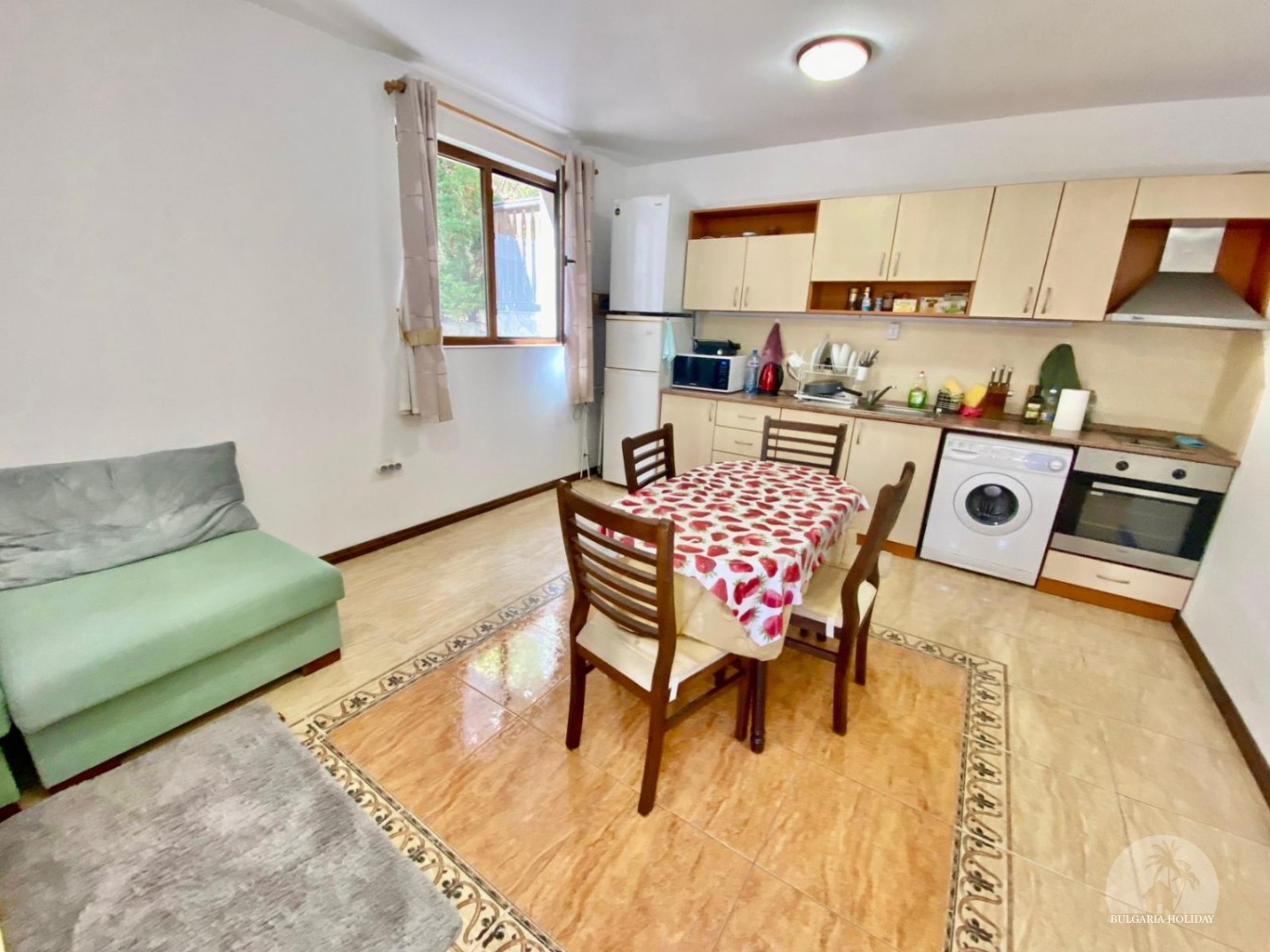 In the center of an almost closed circle there is a restaurant, a children's pool, an adult pool and two mini markets. 100 meters from the beach with a very convenient entry into the water for children (shallow), a trampoline, a restaurant on the beach, etc. Within walking distance there is a marina with beautiful yachts, restaurants for every taste (Russian, Bulgarian, Mediterranean cuisine, sushi bar), boutiques and shops are located along the marina.