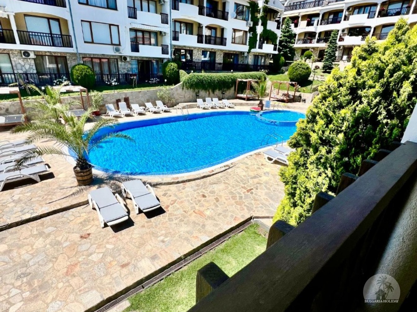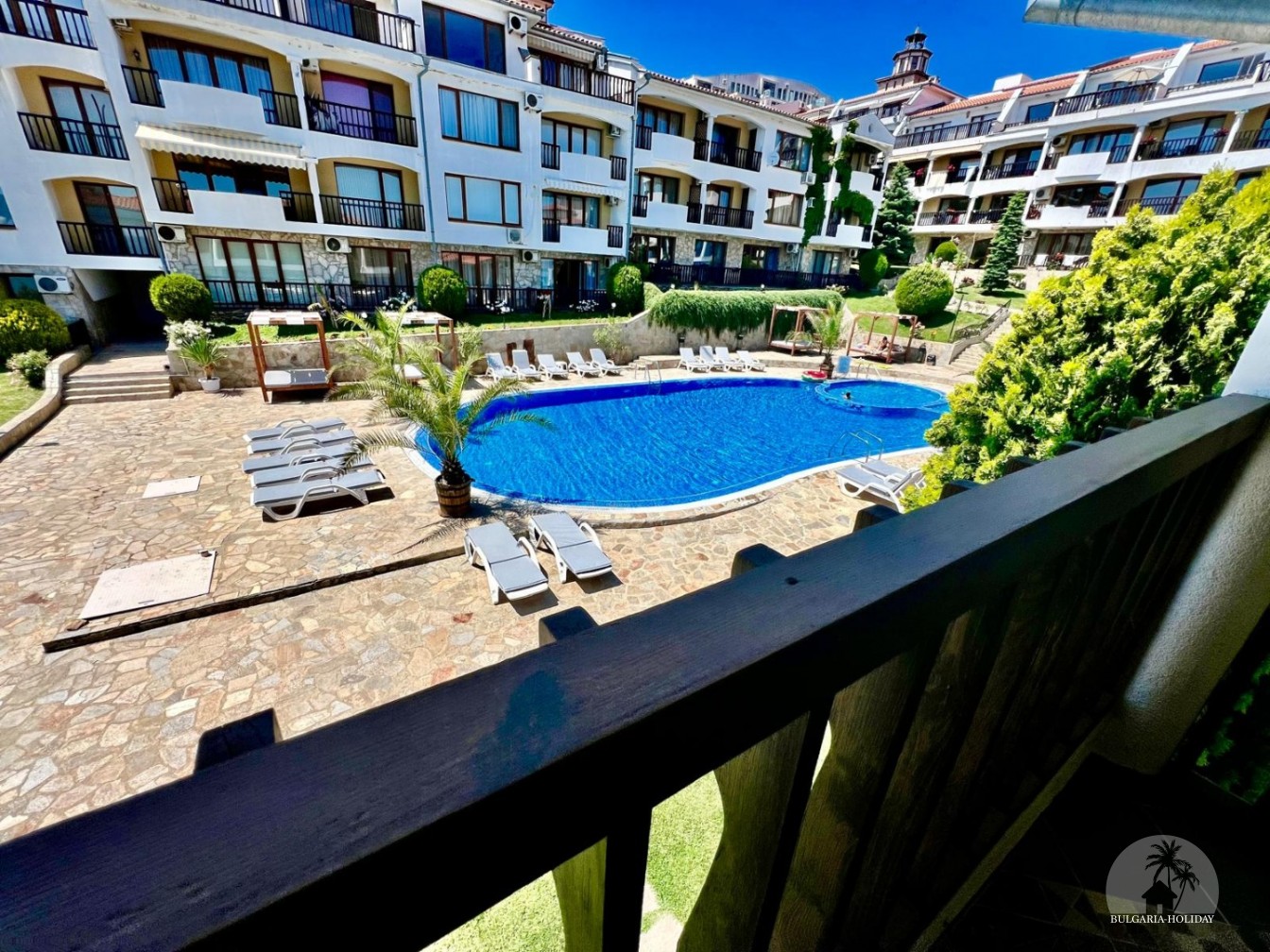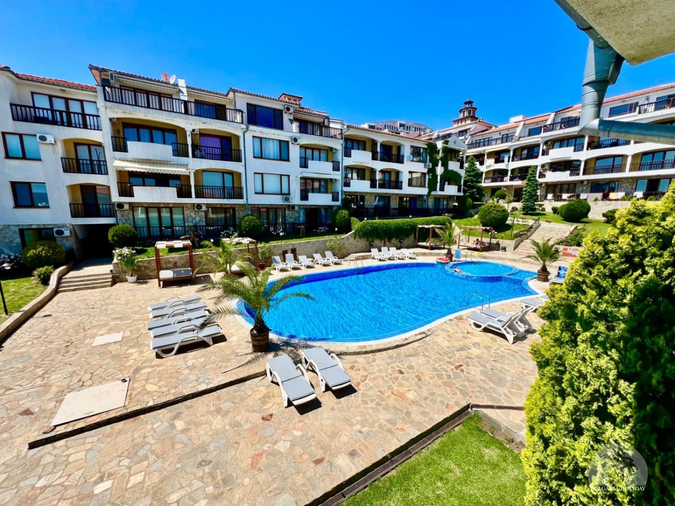 Sun Coast is located in Sveti Vlas, where the picturesque Balkan Mountains rise to the Black Sea, at the foot of which stretch pine forests and endless sandy beaches. - numerous shops, spas and restaurants, and your children will be happy to ride on fun rides; 2 Piano Bars; Disco / Nightclub "Yacht Club Planet"; Yacht port "Marina Dinevi" with a capacity of more than 300 yachts; 14 pools; Beach in the Caribbean style "Venid Beach"; Internet cafe; Salon; Laundry; Bureau of currency exchange; Bank; Amphitheater "Arena" - 450 seats; supermarkets; Fixed-route taxis to Sunny Beach; Aquatics Center; Orthodox Church "Saint Vlasiy"; 5-star boutique hotel "Palace"; And much more.